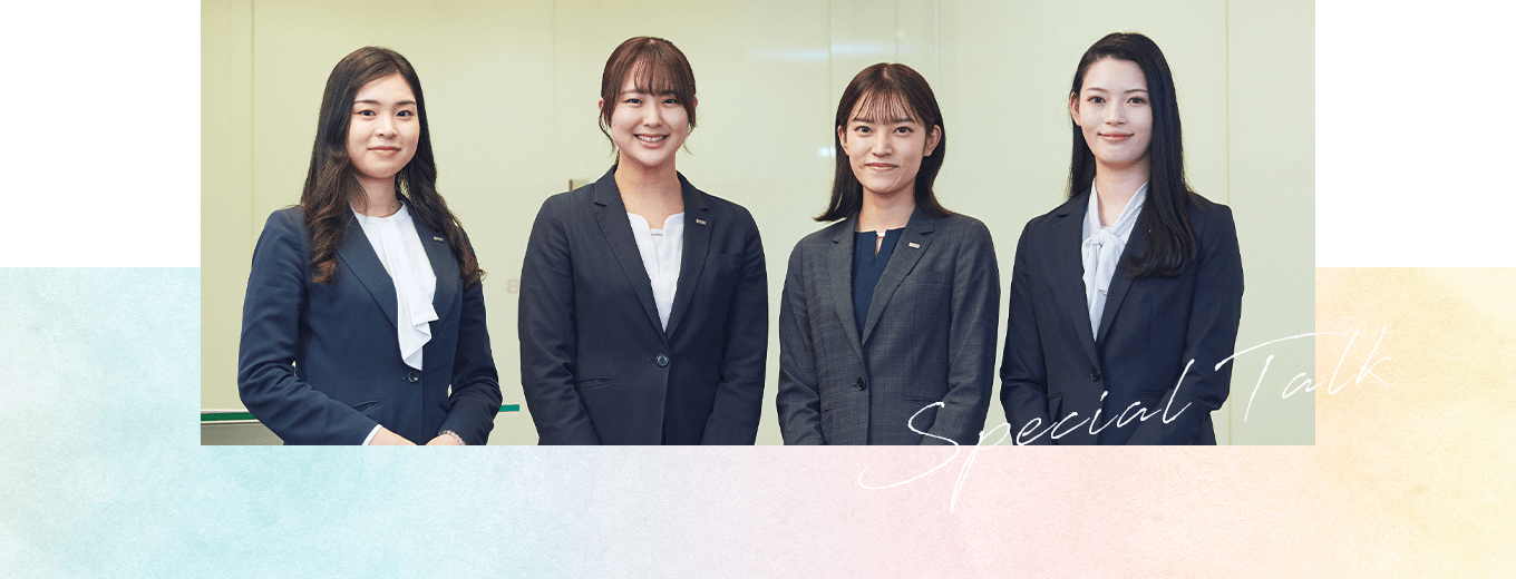 私は学生時代、サークル活動でジャズダンスに打ち込んでいて、公演の際、企業から活動資金を得るため営業活動も行っていました。そこで実感したのが、金融は人をサポートする大きな力になるということ。自分も金融を通じてお客さまをサポートできるような仕事をしたいと考えるようになりました。金融業界の中でも、鈴木さんと同じように、みずほグループの連携の強さに惹かれました。グループの総合力を活かすことで、より多くの人の期待に応えられると思ったのです。また、女性向けの座談会に参加したことがあったのですが、育児に励みながら活き活きと働いている社員の方々を見て、私もその社員のように情熱を持って仕事に向き合い、働き続けたいと感じたことが入社の最後の決め手になりました。